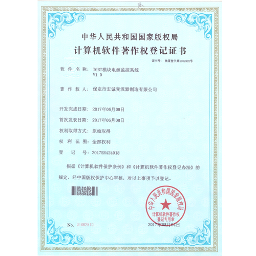 計(jì)算機(jī)軟件注冊(cè)權(quán)登記證書(shū)——IGBT模塊電源監(jiān)控系統(tǒng)V1.0