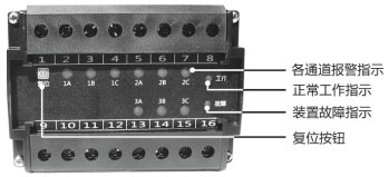 檢測各路運行狀態(tài),當(dāng)任何一路保護(hù)時,故障燈點亮。 |